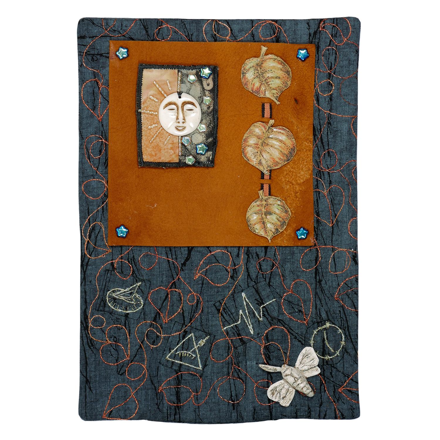Free motion quilted, thread wrapped, beaded, laced, illustrated, sculpted, inked, glued