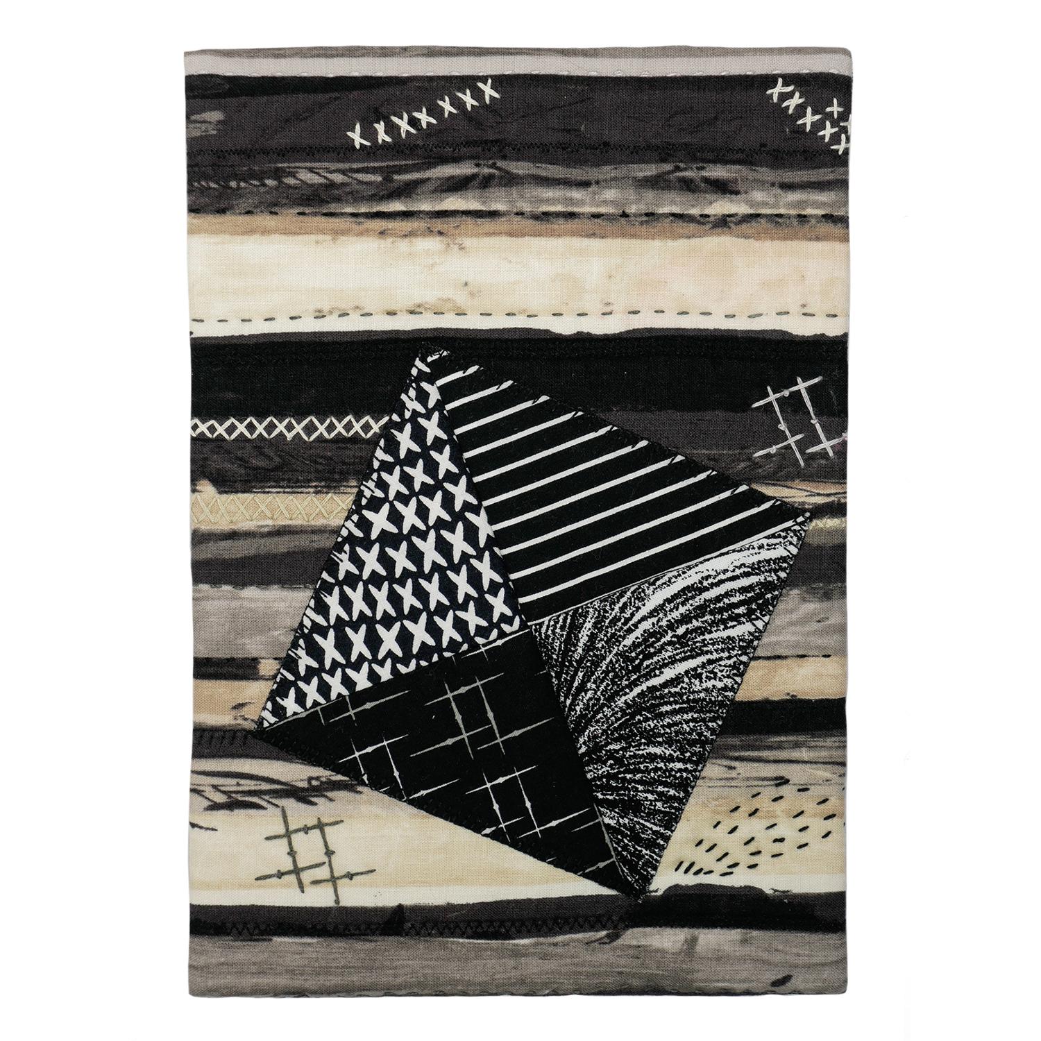 My world felt "Monochrome" after losing three women friends due to cancer within three weeks this spring. The second loss was SAQA member, Mary Bunte. Mary was part of my weekly Friday Breakfast Club. Her husband Dave invited her friends to select fabrics from her stash. We have been finding ways to lovingly use her materials. The fabrics used in this piece had all been hers. I let the fabric tell me what to do. After finishing it, I looked up the meaning of an "X". I learned that an "X" signifies the end of something—an entity whose existence is over, and it can also mean the "crossing over" to another dimension.