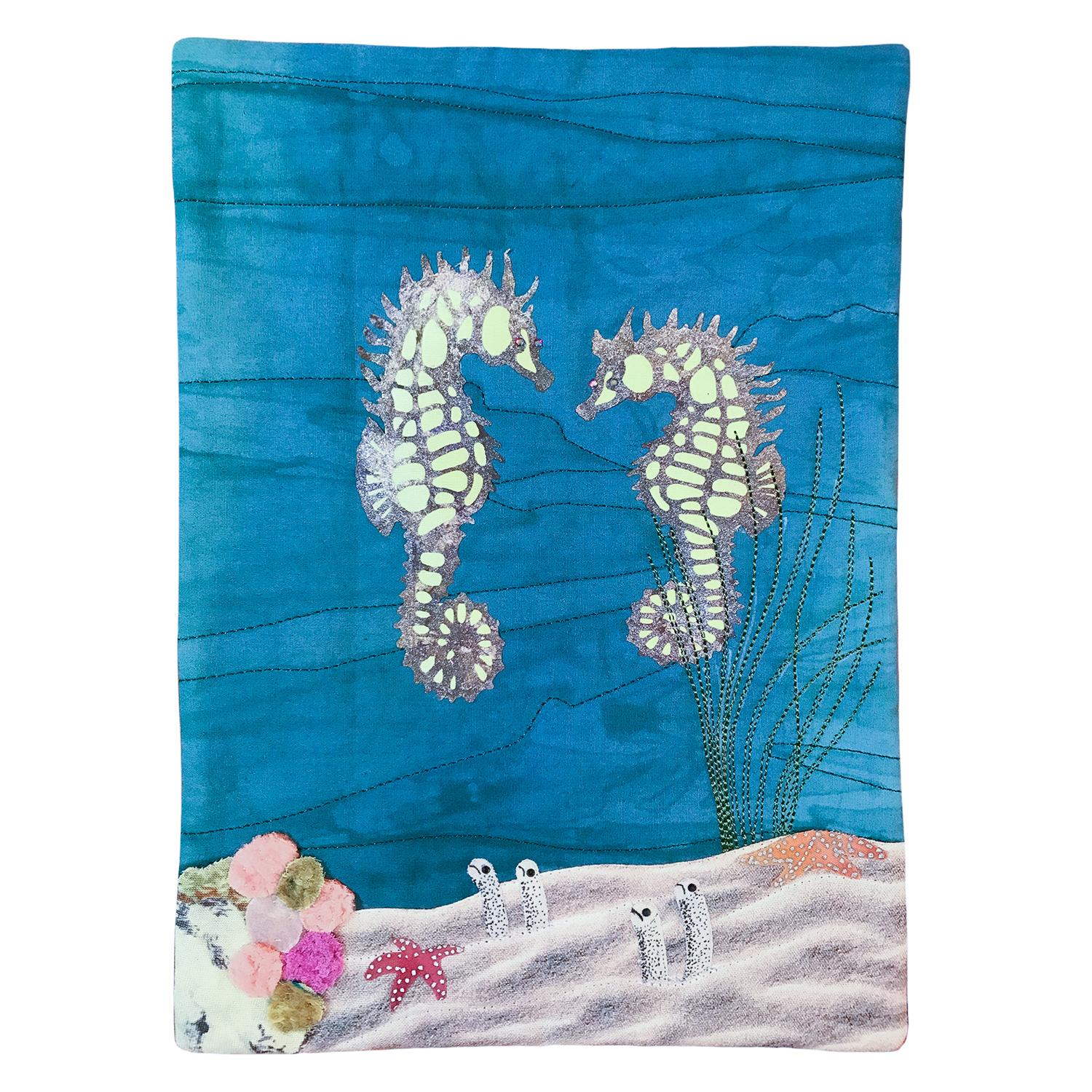 I just finished a large piece on ocean creatures that I'd planned for a long time. I had decided not to use the sea horses, so was glad to make a small version and make them the center, though I named it "Sand Eels" as "Sea Horses" would be too obvious!