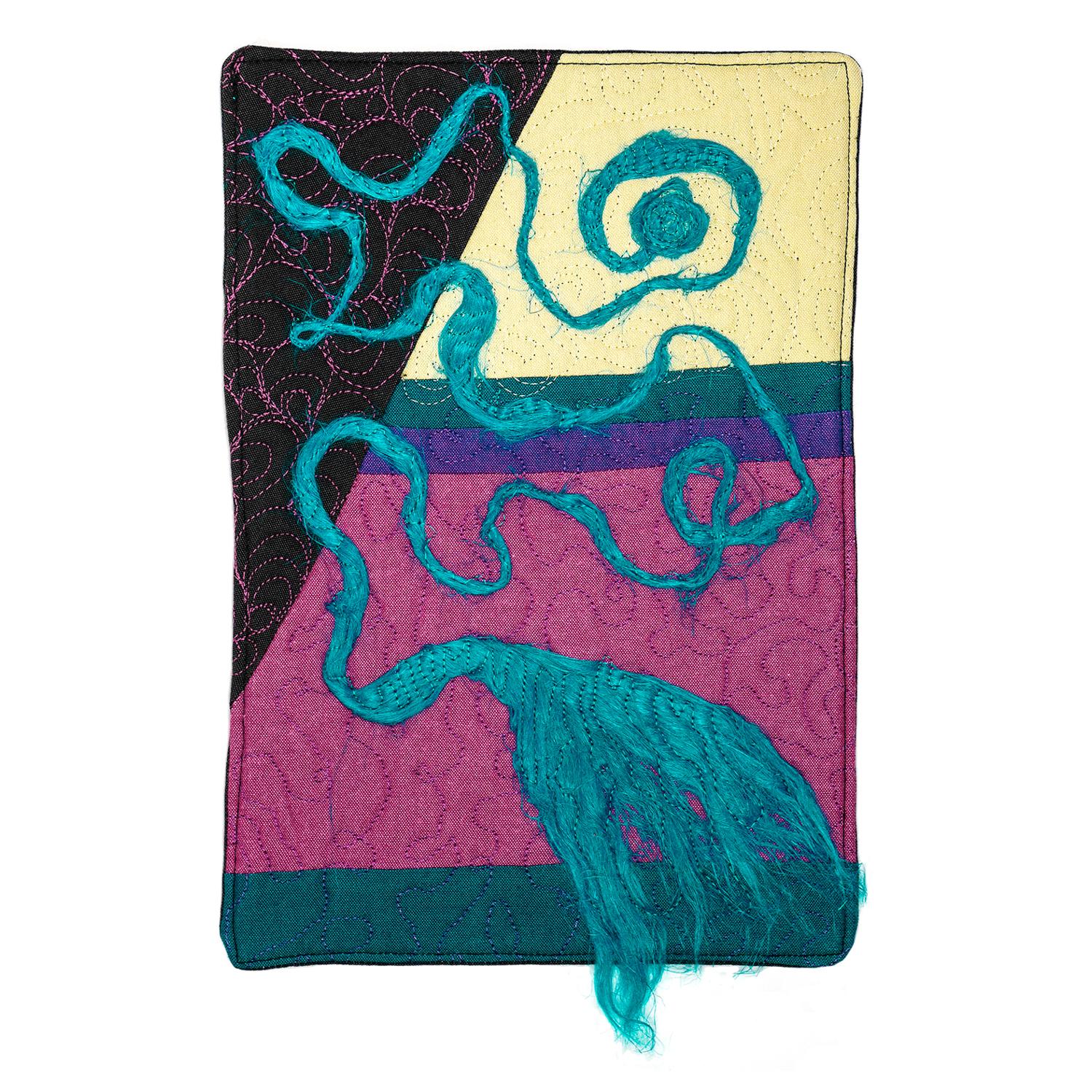 Hand spun, free motion quilted, free form pieced, couched, embellished